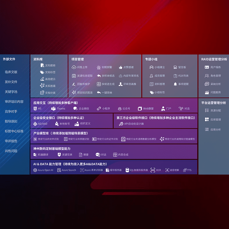 医疗器械产品上市前,,,要熟悉严格与繁复评审标准,,整理分析监管机构指导文件中的海量信息。。。。企业急需一个智能化解决方案,,,提升知识管理效率,,,提高评审通过率,,,以提升其市场竞争力。。。